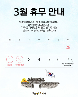 정보나눔 > 공지사항 2026 세종여성플라자 설 휴무 안내2026.02.13
