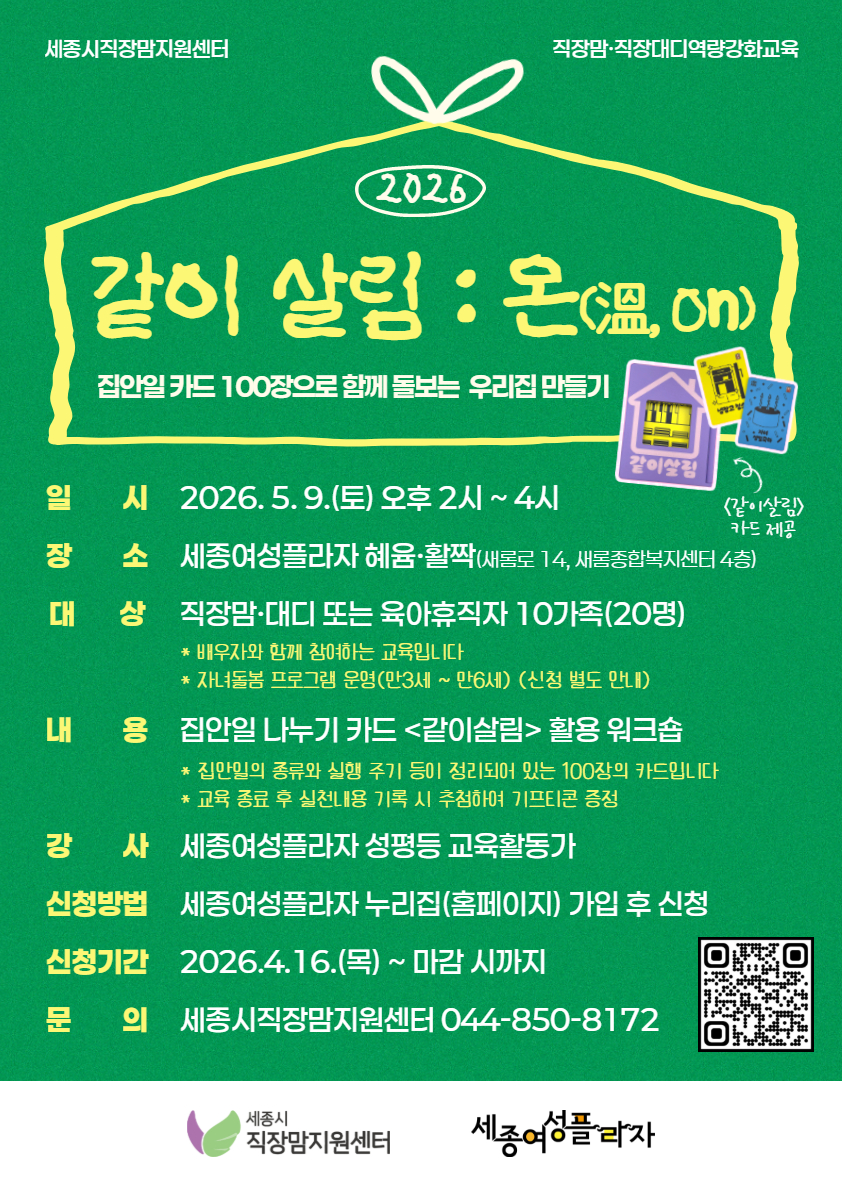 ○ 문의 : 세종시직장맘지원센터 044-850-8172