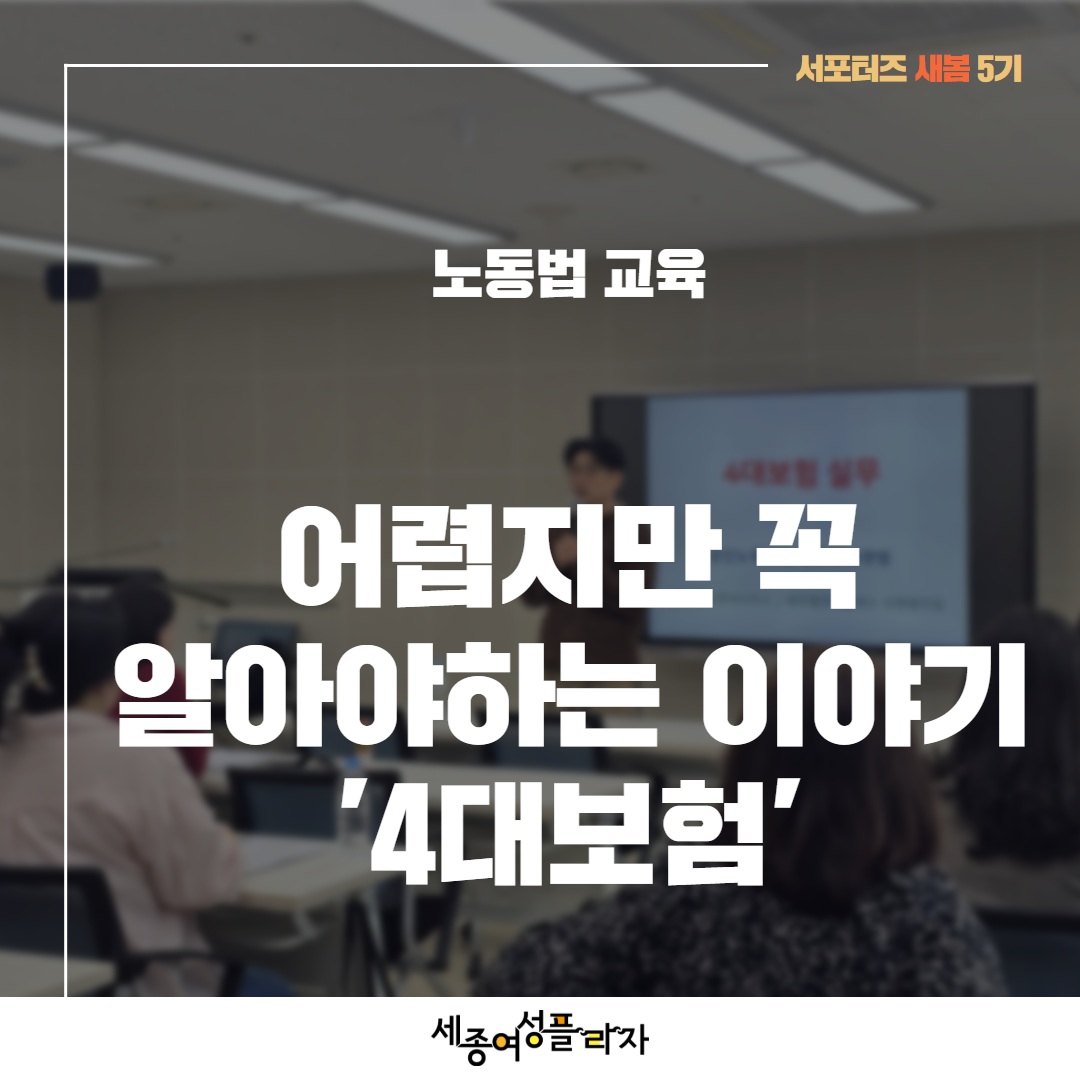| [세종여성플라자 새봄_노동법 교육] 어렵지만 꼭 알아야하는 이야기, 4대보험 실무 강의에 다녀왔어요 | |