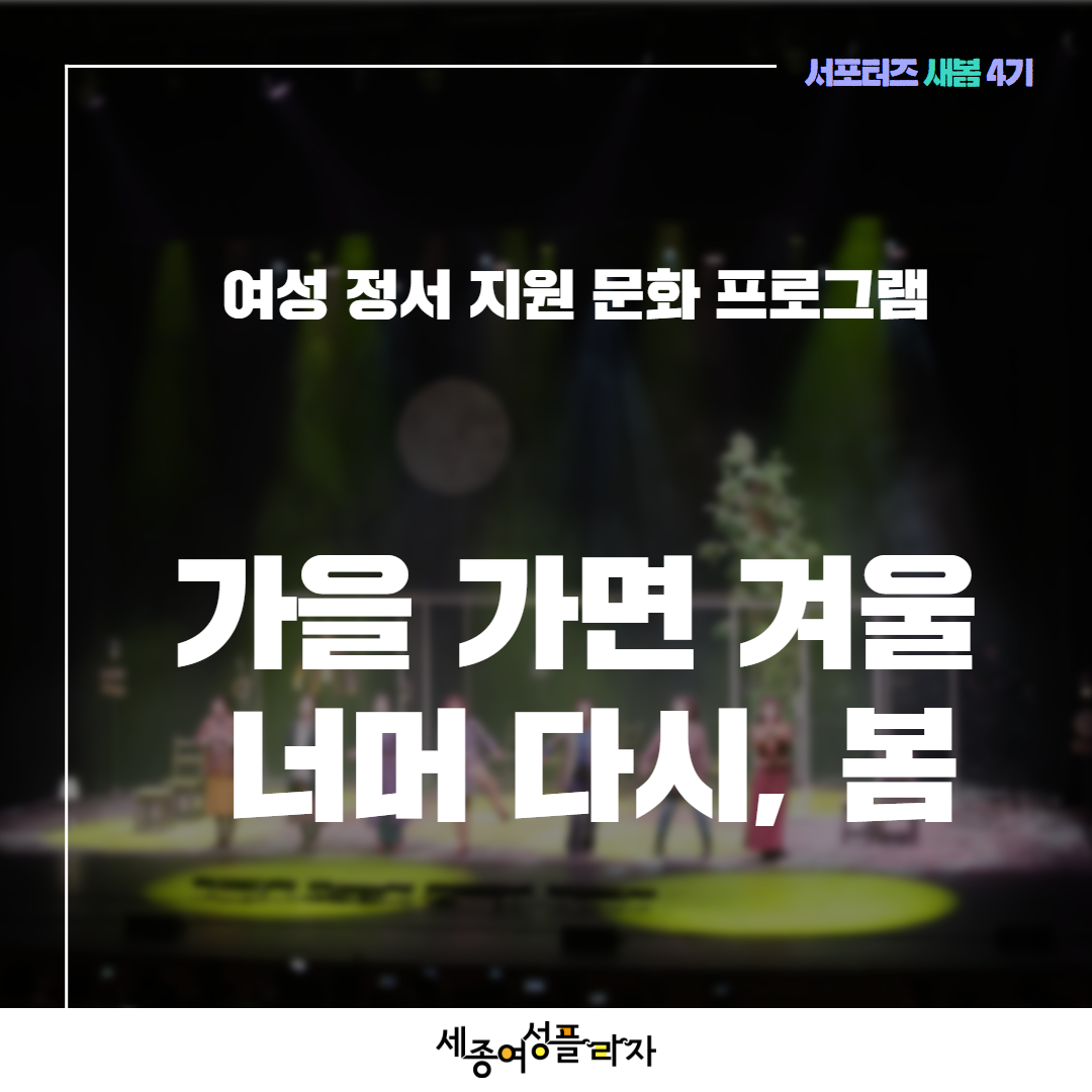 | [세종여성플라자 새봄_여성 정서 지원 문화 프로그램] 가을 가면 겨울 너머 다시, 봄 | |