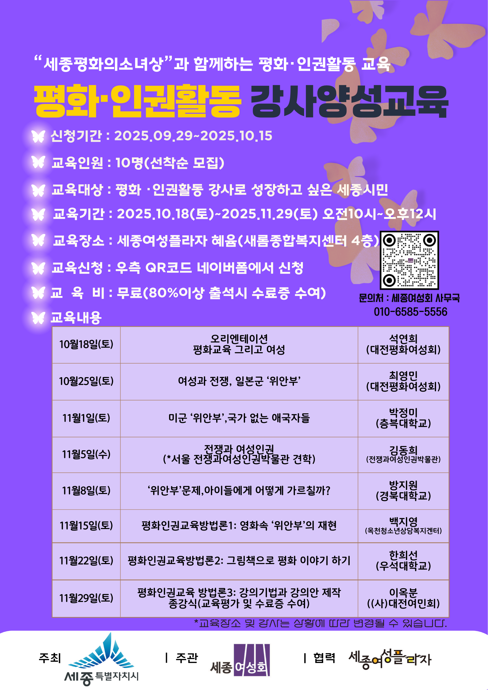 지원 기관 | 세종여성회 | 신청 방법 | 네이버 폼 링크 신청 https://naver.me/58jyXBM7 |