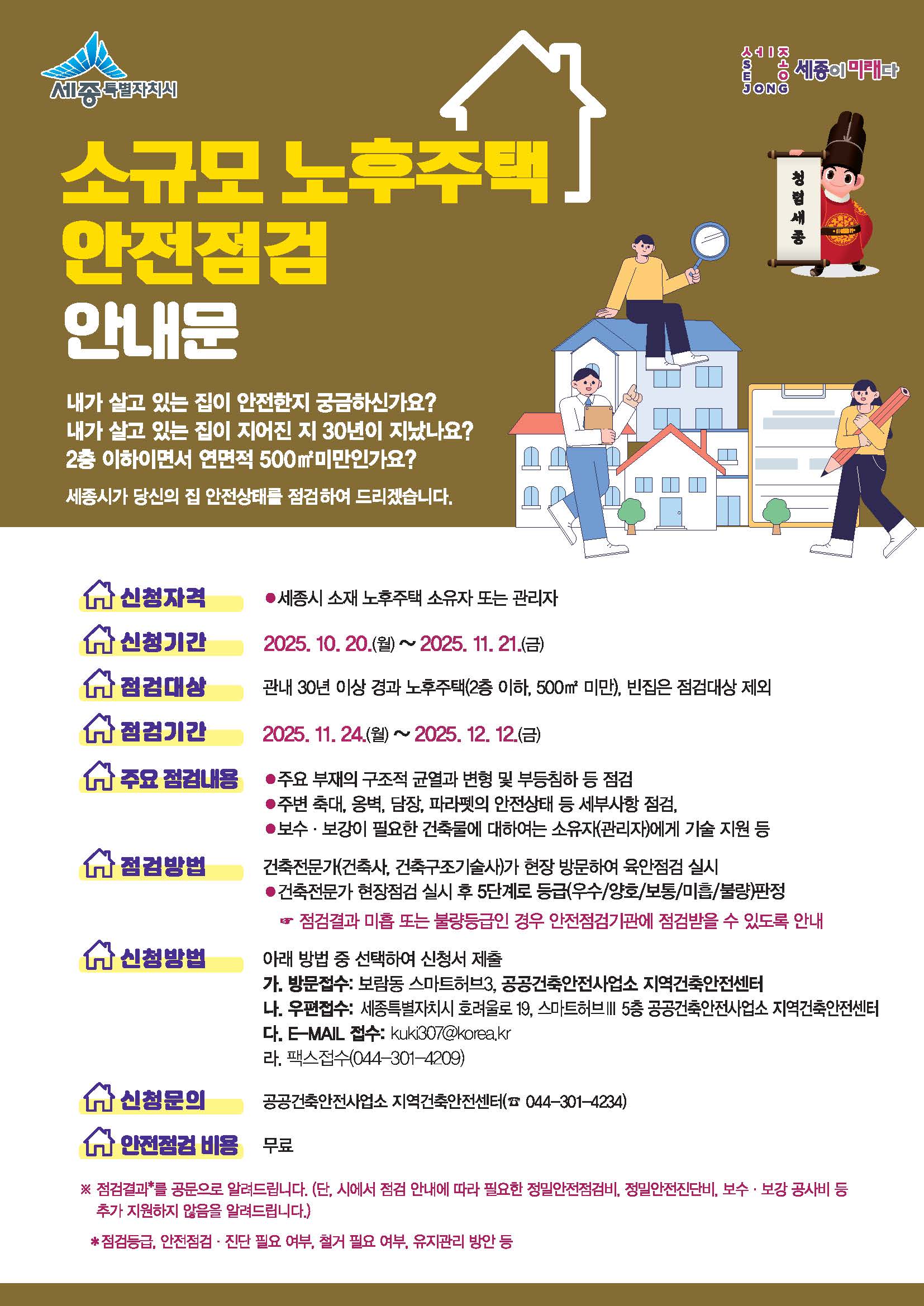 | 정책이름 | 25년 하반기 "소규모 노후건축물 안전점검" 신청 안내 | 정책 분야 | 안전 |