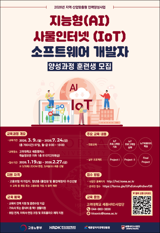 정책이름 [2026년 채용 예정자과정 교육생 모집] 지능형(AI) 사물인터넷 (IoT) 소프트웨어 개발자 정책 분야 교육