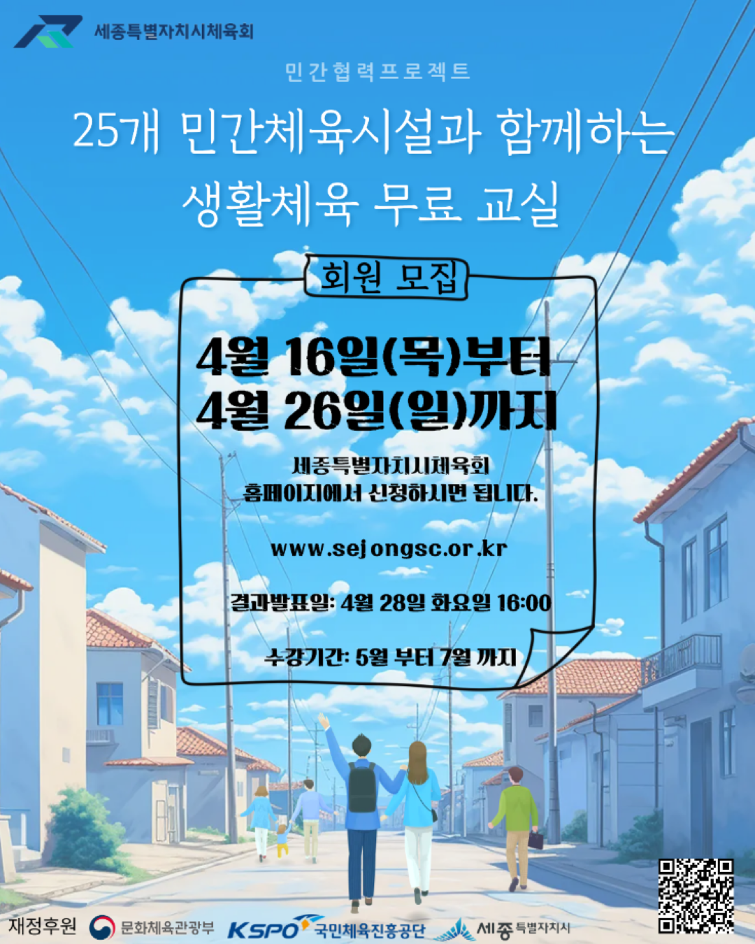 | 정책 소개 | 세종특별자치시 체육회에서 2026년 민간체육시설 생활체육 무료프로그램 참가자를 아래와 같이 모집하오니 많은 참여 바랍니다. | 정책 내용 | 상세내용확인은 하단 '신청하러 갈래요' 클릭 후 해당 게시물 참조 부탁드립니다. |