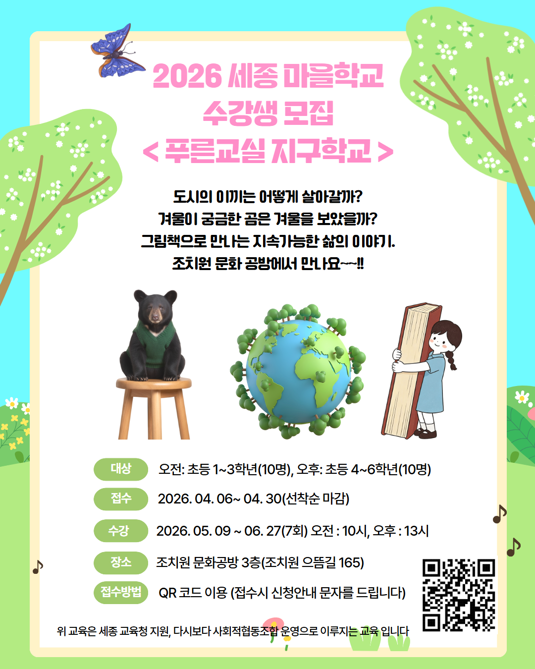 “세종 마을학교 푸른교실 지구학교 참여자 모집” 정책과 키워드가 같은 정책을 찾았어요!