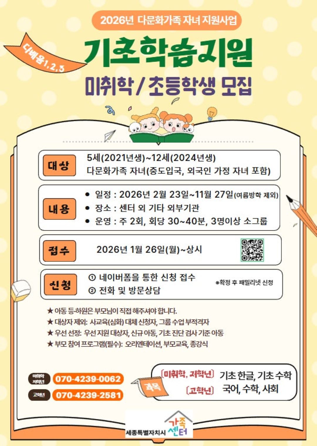 | 문의 사항 | 070-4239-0062 (미취학, 저학년) / 070-4239-2581 (고학년) | 키워드 |