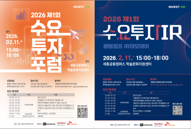 전체 381건 현재 페이지 1/64 카드리스트 검색 제목+내용 제목 내용 작성자 검색 3.8 세계여성의 날 기념 제 3회 세종시 여자 풋살대회 작성일 2026.02.12 조회수 51 2026 세계 여성의 날 기념 컨퍼런스 작성일 2026.02.12 조회수 14 청년여성 AI활용 취업역량 레벨업 작성일 2026.02.10 조회수 27 공동육아나눔터와 함께하는 육아솔루션-육아나눔 소통데이 작성일 2026.02.10 조회수 21 2026년 여성장애인교육지원사업 '환경 클래스' 작성일 2026.02.09 조회수 31 2026년 제1회 세종창조경제혁신센터 수요투자포럼 & 수요투자 IR 개최 안내 작성일 2026.02.05 조회수 43 1 2 3 4 5 6 7 8 9 10 1 / 64