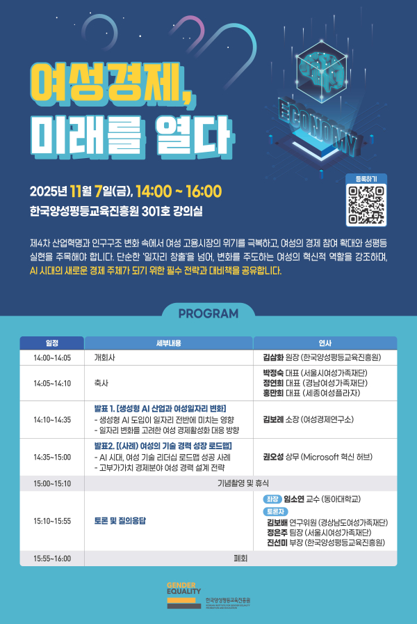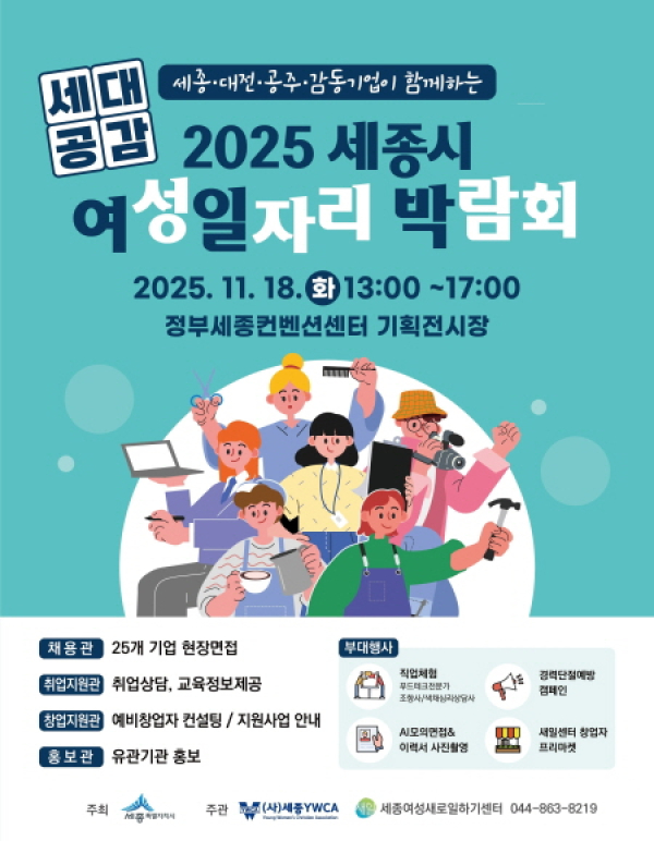 전체 341건 현재 페이지 1/57 카드리스트 검색 제목+내용 제목 내용 작성자 검색 [한국양성평등교육진흥원] 여성경제, 미래를 열다!! 작성일 2025.10.28 조회수 21 [세종여성새로일하기센터] 2025 "세종시 여성일자리박람회" 작성일 2025.10.28 조회수 25 [세종특별자치시] 2025년 "세종 평화통일 가족캠프" 참여자 연장 모집 작성일 2025.10.28 조회수 23 [세종시자원봉사센터]"제14회 세종시자원봉사자대회" 쇼츠공모전 안내 작성일 2025.10.24 조회수 40 [세종청년센터] SK현직자와 함께하는 직무 멘토링-취업실전전략 작성일 2025.10.23 조회수 31 [세종여성회] 제6회 "세종평화의소녀상" 겨울나기 행사안내 작성일 2025.10.21 조회수 56 1 2 3 4 5 6 7 8 9 10 1 / 57