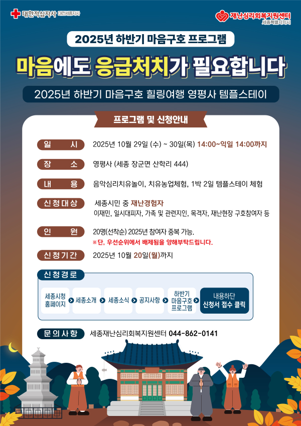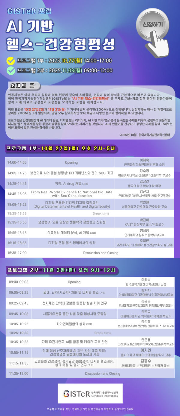 전체 362건 현재 페이지 7/61 카드리스트 검색 제목+내용 제목 내용 작성자 검색 [한국과학기술젠더혁신센터] AI 기반 헬스–건강형평성 포럼 작성일 2025.10.15 조회수 68 [움직임사회적협동조합] 2025 옥상달빛 프로젝트 "홀씨축제" 작성일 2025.10.14 조회수 96 [재난심리회복지원센터] 2025년 하반기 마음구호 프로그램 참가자 모집 작성일 2025.10.14 조회수 85 [세종청년센터] "이달의 엄빠활력충전소" 프로그램을 운영 안내 작성일 2025.10.13 조회수 84 [청년지갑트레이닝센터] "저축상품만 잘 알아도 돈을 벌수 있다" 특강 참여자 모집 작성일 2025.10.13 조회수 90 [세종특별자치시 자치행정과] 2025년 "세종 평화통일 가족캠프" 참여자 모집 작성일 2025.10.13 조회수 75 2 3 4 5 6 7 8 9 10 11 7 / 61