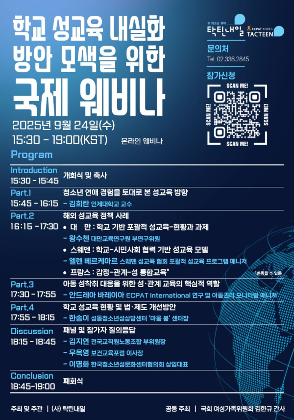 전체 359건 현재 페이지 9/60 카드리스트 검색 제목+내용 제목 내용 작성자 검색 [세종특별자치시교육청] 존중하고 배려하는 양성평등 문화조성 작성일 2025.09.12 조회수 124 [세종특별자치시육아종합지원센터] "심폐소생술" 부모교육 작성일 2025.09.12 조회수 121 [세종청년센터] "청년부모를 위한 엄빠활력충전소 2기" 참여자 모집 작성일 2025.09.12 조회수 95 [세종특별자치시장애인권익옹호기관] 2025년 장애인 학대 및 차별 예방을 위한 대... 작성일 2025.09.10 조회수 98 [(사)탁틴내일] "학교 성교육 내실화 방안 모색을 위한 국제 웨비나" 안내 작성일 2025.09.10 조회수 108 [세종특별자치시교육청] "학생생활교육 관련 국내외 법규정 검토와 교육적 모색포... 작성일 2025.09.09 조회수 99 4 5 6 7 8 9 10 11 12 13 9 / 60