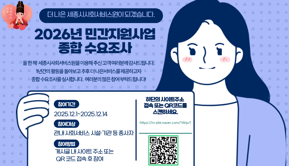 | [세종시사회서비스원] 2026년 민간지원사업 종합수요조사 | |