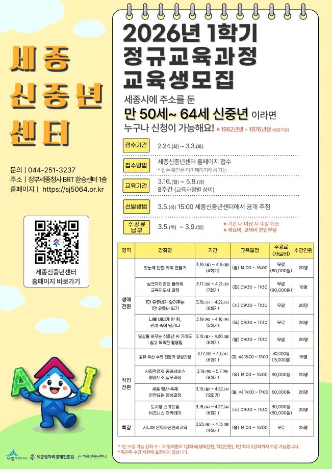 | [세종신중년센터] 2026년 정규교육과정 1학기 교육생 모집 | |