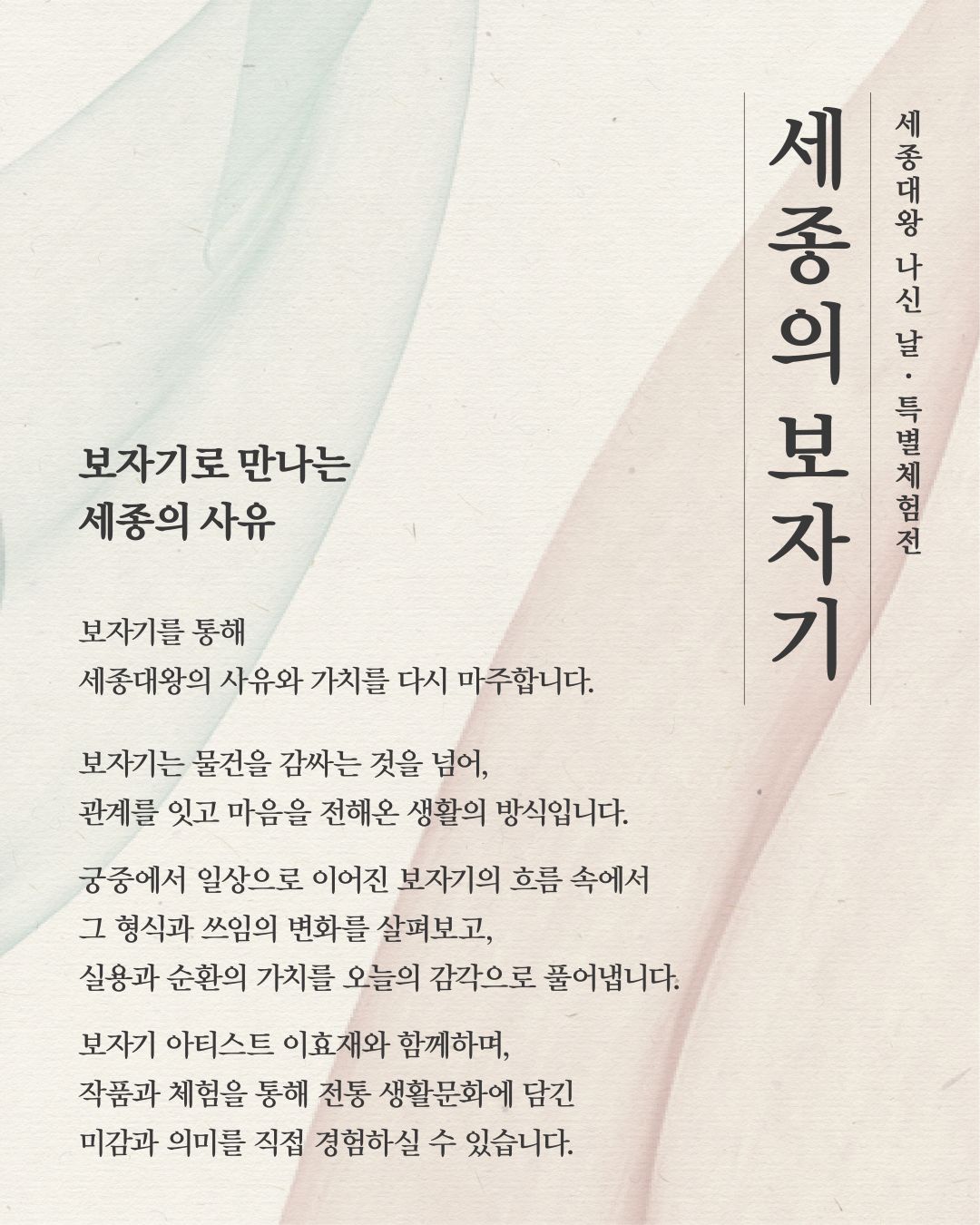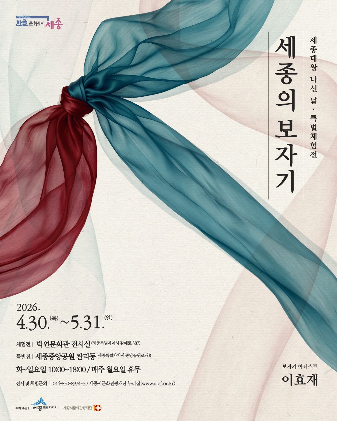 | [세종시문화관광재단] 2026 세종대왕 나신 날 특별체험전 '세종의 보자기' 안내 | |