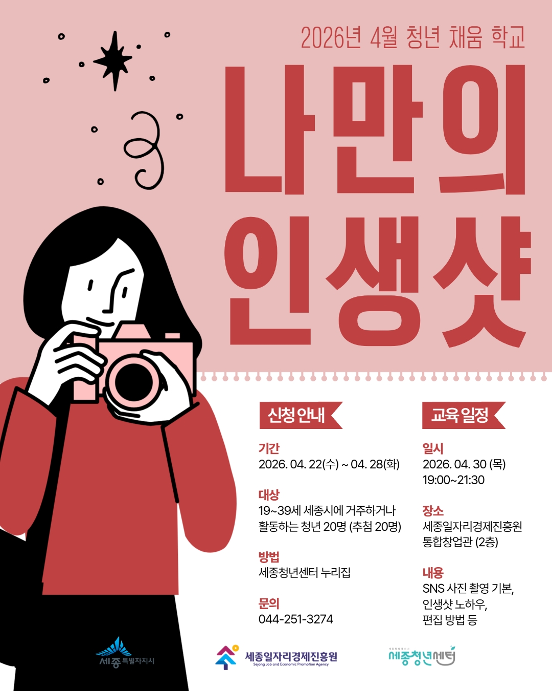 | [세종청년센터] 2026년 4월 채움 학교 봄맞이 사진 특강: '나만의 인생샷' | |