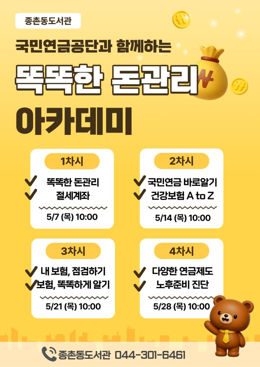 | [종촌동도서관] 국민연금공단과 함께하는 똑똑한 돈관리 아카데미 | |