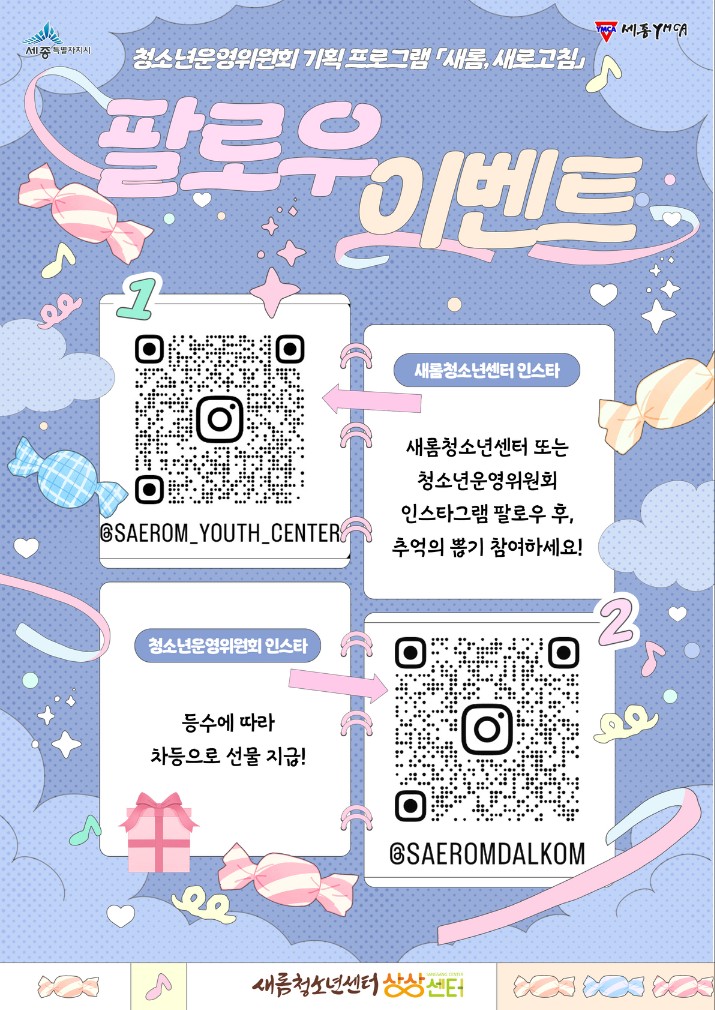 여성정책 > 기관단체 소식 여성정책 > 기관단체 소식 관한 표입니다. [새롬청소년센터] 청소년운영위원회 기획 프로그램 '새롬청소년센터 리모델링 및 어린이날 기념 이벤트 작성자 관리자 작성일2025.04.21 조회수 269 첨부파일 포스터1.jpg (172.0 KB) 포스터2.jpg (147.4 KB) 포스터3.jpg (146.5 KB) 포스터4.jpg (231.1 KB) 포스터5.jpg (161.0 KB) 목록으로