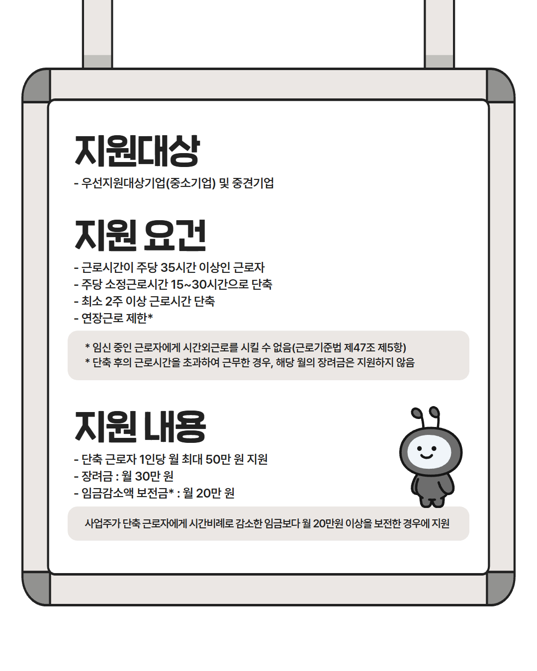 [사업주지원]워라벨 일자리 장려금_임신사유 근로시간 단축 시 | |