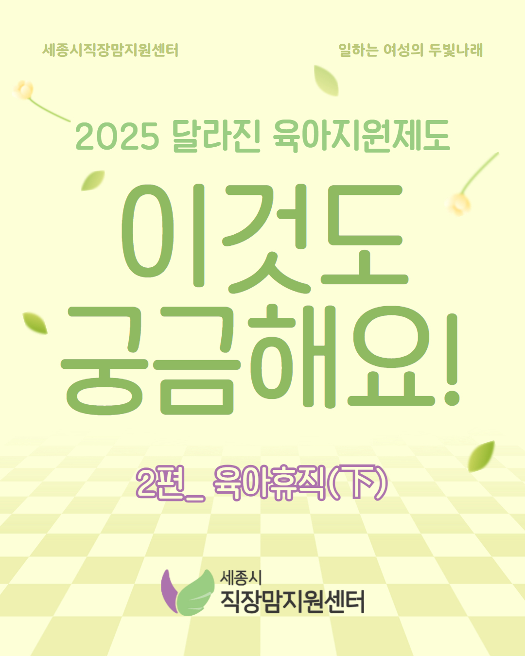 일,생활균형소식 일,생활균형소식 관한 표입니다. [육아]2025 달라지는 육아지원제도, 이것도 궁금해요! -2편 육아휴직(下)- 작성자 관리자 작성일2025.05.07 조회수 522 첨부파일 인스타_육아지원제도_QA_5.jpg (403.4 KB) 인스타_육아지원제도_QA_6.jpg (736.1 KB) 인스타_육아지원제도_QA_7.jpg (778.5 KB) 인스타_육아지원제도_QA_8.jpg (733.0 KB) 목록으로 다음글 2025 달라지는 육아지원제도, 이것도 궁금해요! -3편 육아기 근로시간 단축, 배우자 출산휴가- 이전글 2025 달라지는 육아지원제도, 이것도 궁금해요! -1편 육아휴직(上)-