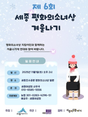 여성정책 > 기관단체 소식 [세종여성회] 제6회 "세종평화의소녀상" 겨울나기 행사안내2025.10.21