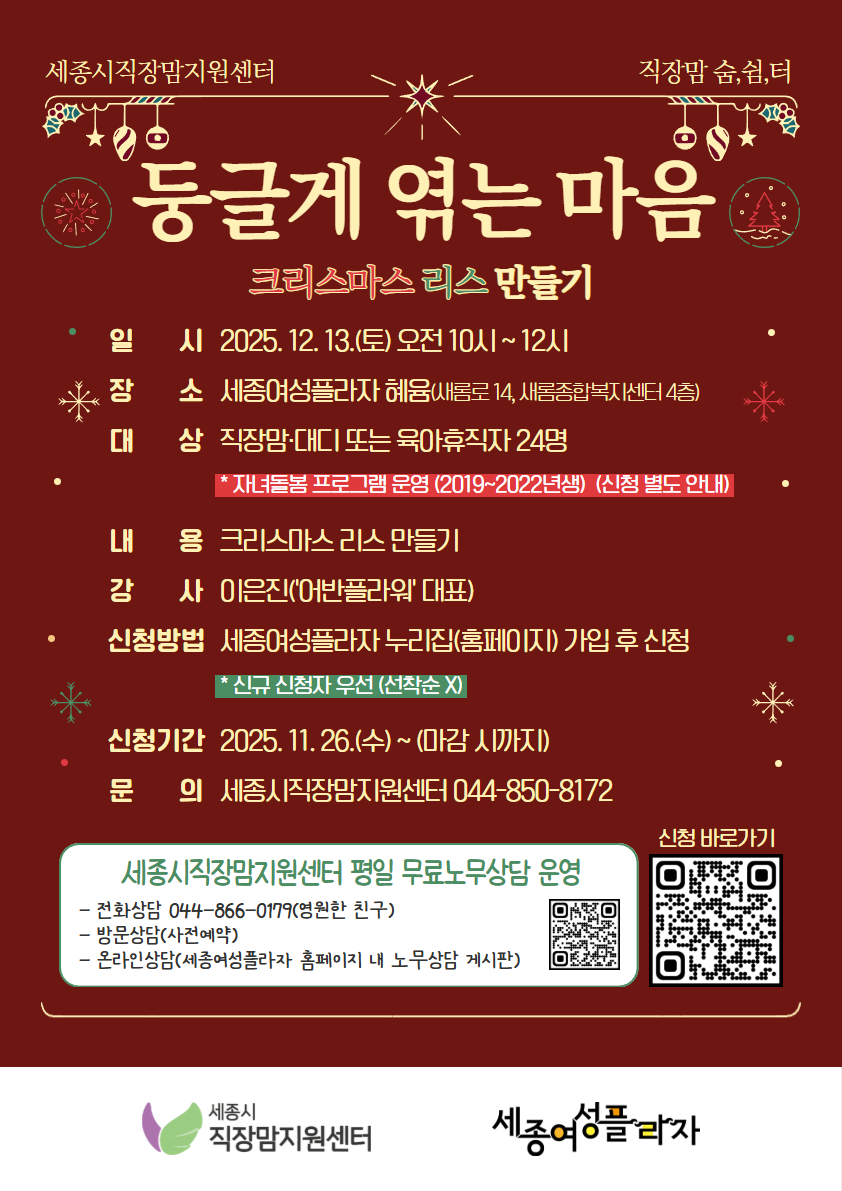○ 문의 : 세종시직장맘지원센터 044-850-8172