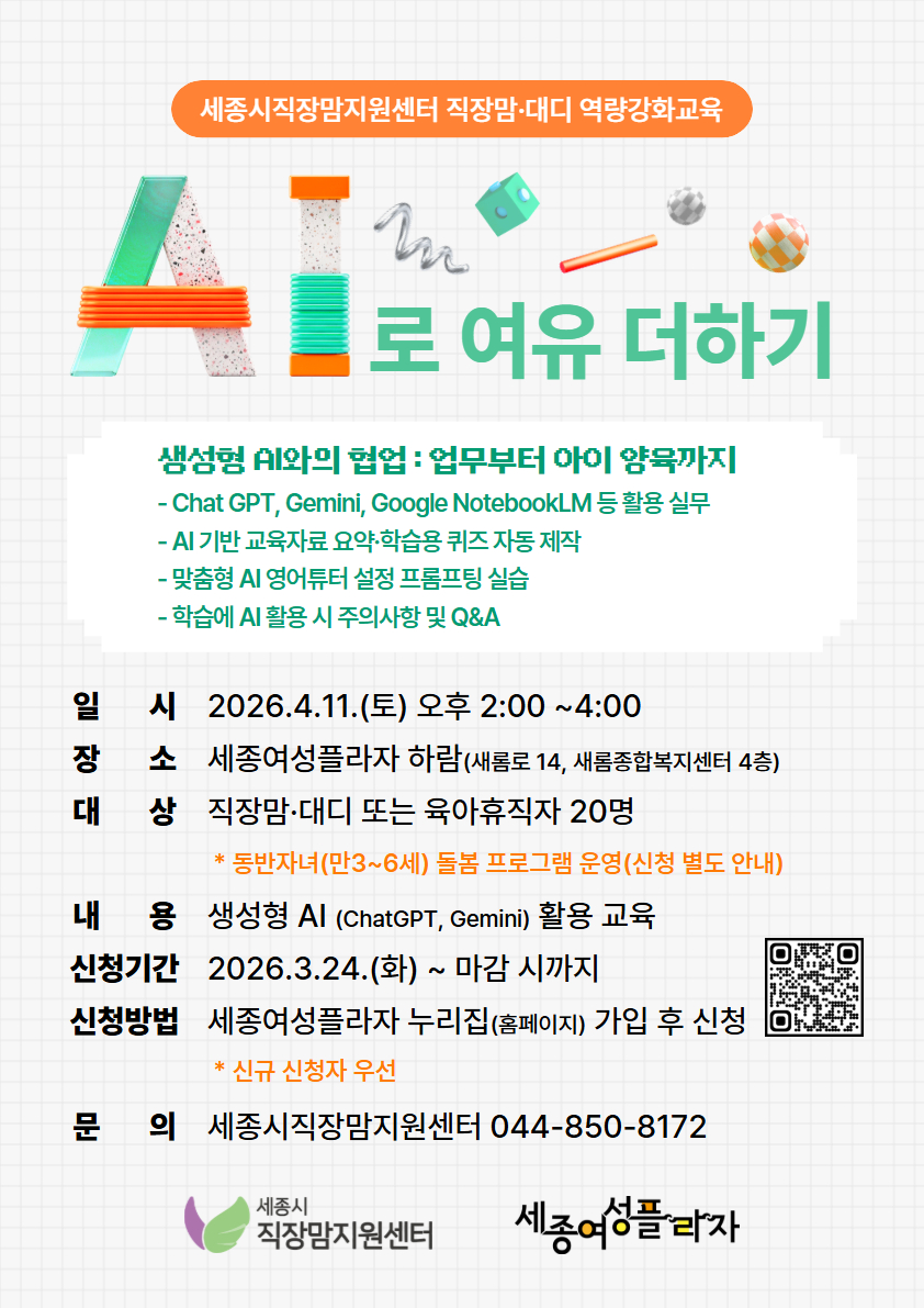 ○ 문의 : 세종시직장맘지원센터 044-850-8172