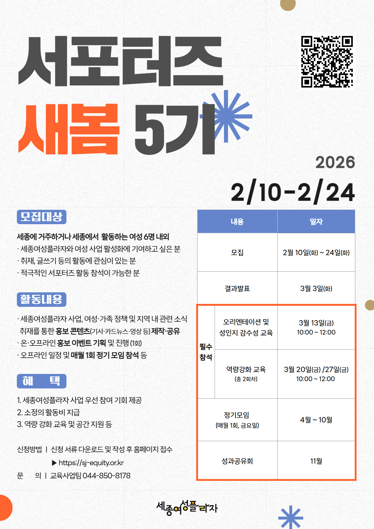 ○ 결과발표: 2026. 3. 3.(화), 세종여성플라자 누리집 게시