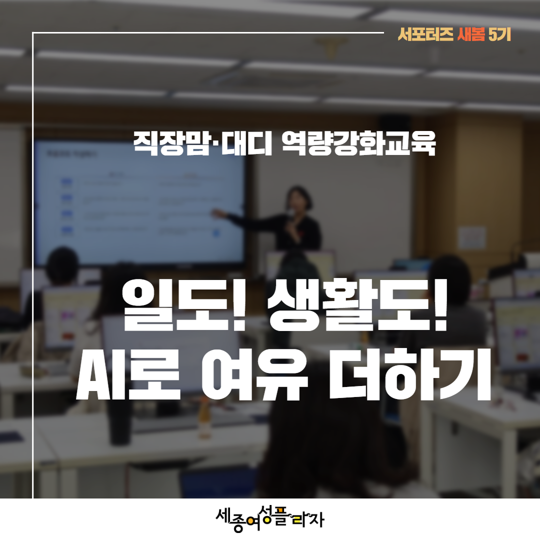| [세종여성플라자 새봄_직장맘·대디 역량강화교육] 일도! 생활도! AI로 여유 더하기 | |