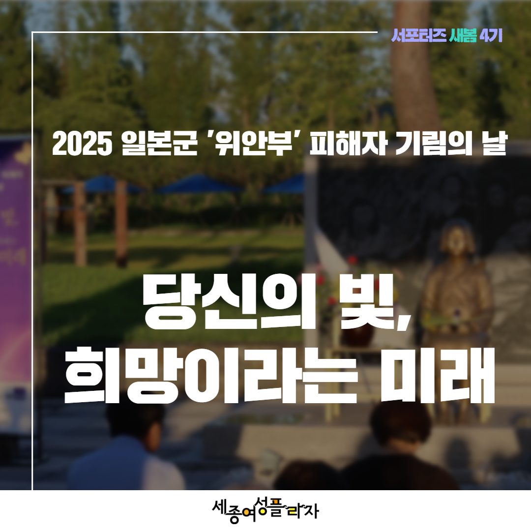 ![]() 서포터즈 새봄 4기 [2025 일본군'위안부'피해자 기림의 날] 당신의 빛, 희망이라는 미래! 내용을 확인하고 싶다면??