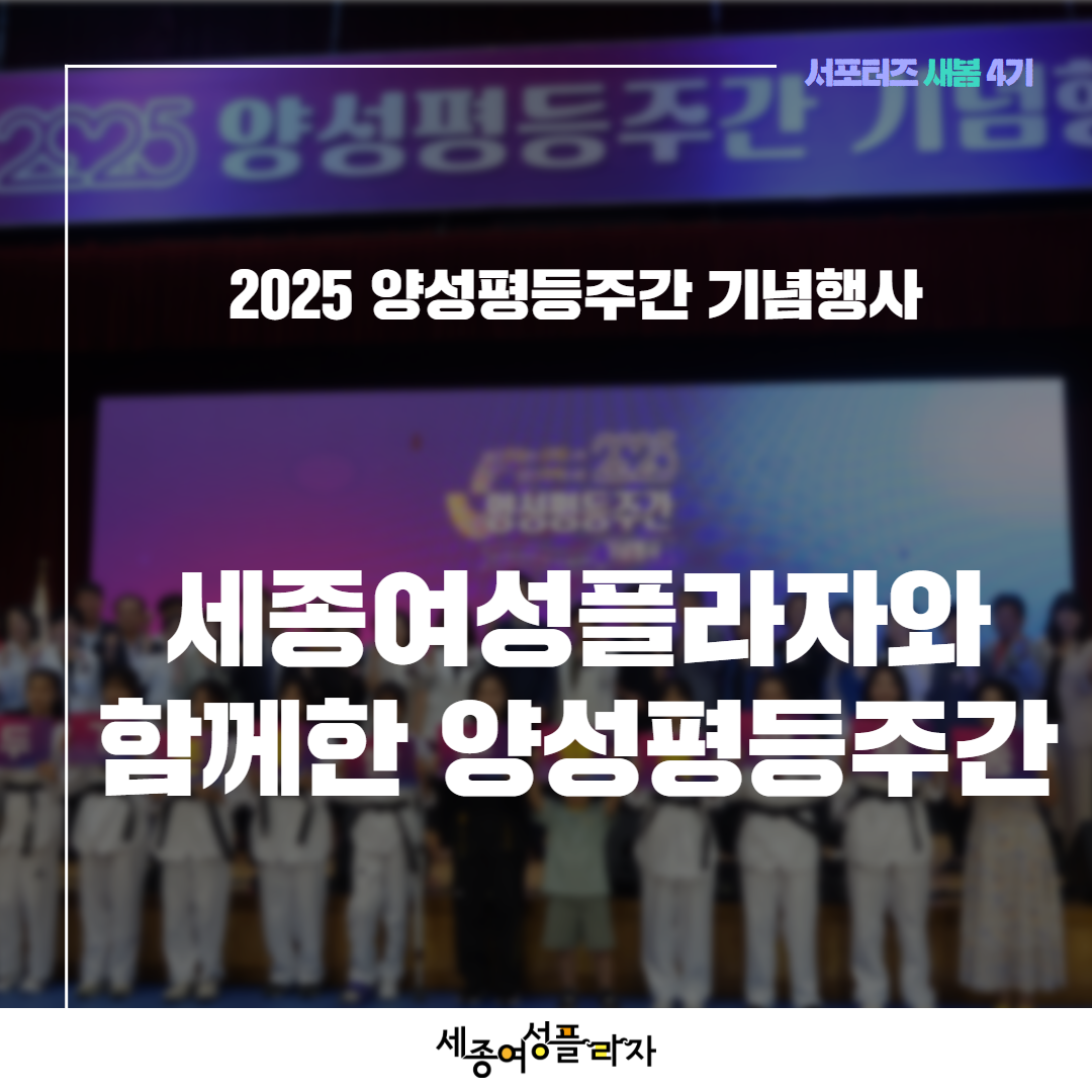 서포터즈 새봄 4기 [2025 양성평등주간 기념행사] 세종여성플라자와 함께한 양성평등주간! 내용을 확인하고 싶다면??