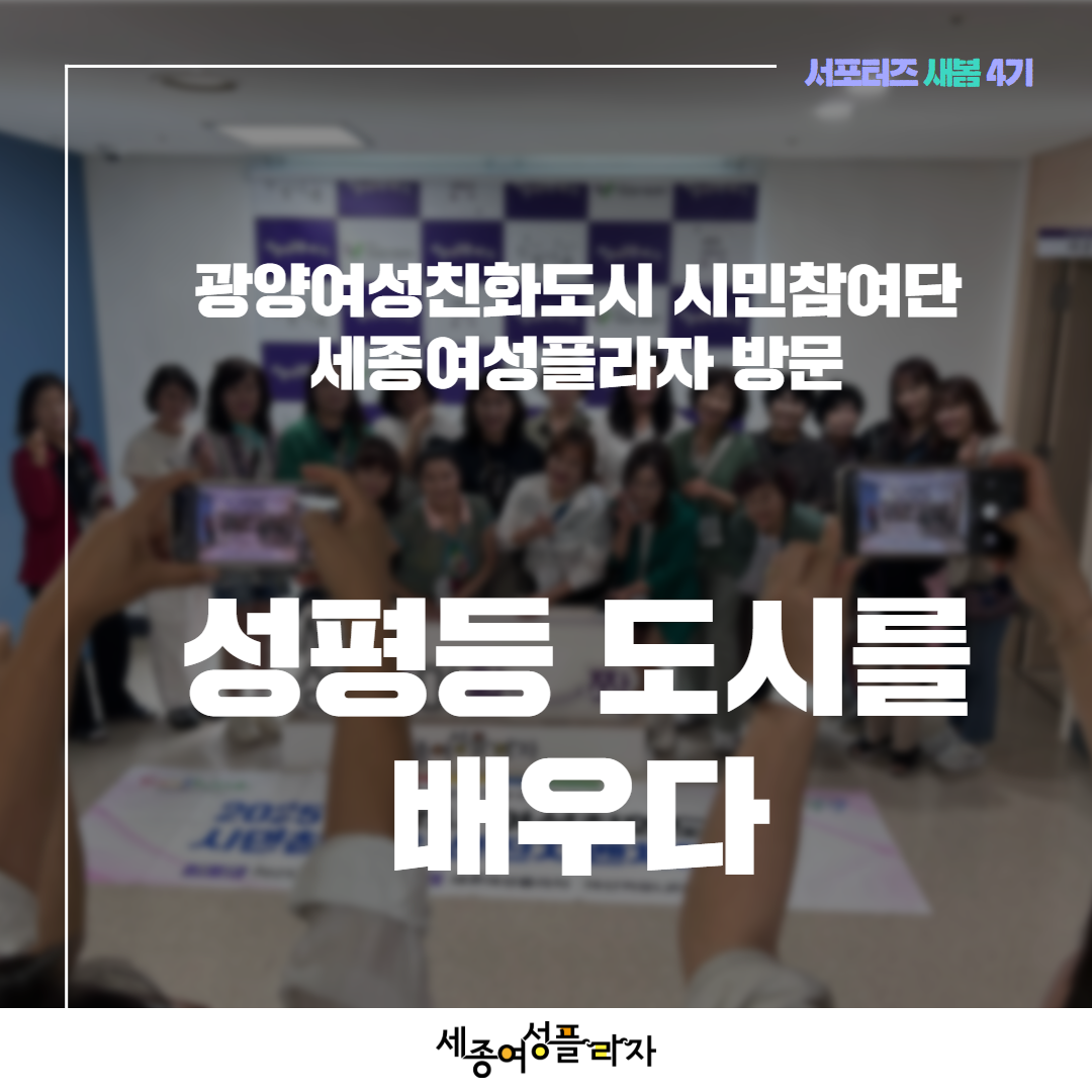 ![]() 서포터즈 새봄 4기 [광양여성친화도시 시민참여단 세종여성플라자 방문] 성평등 도시를 배우다! 내용을 확인하고 싶다면??