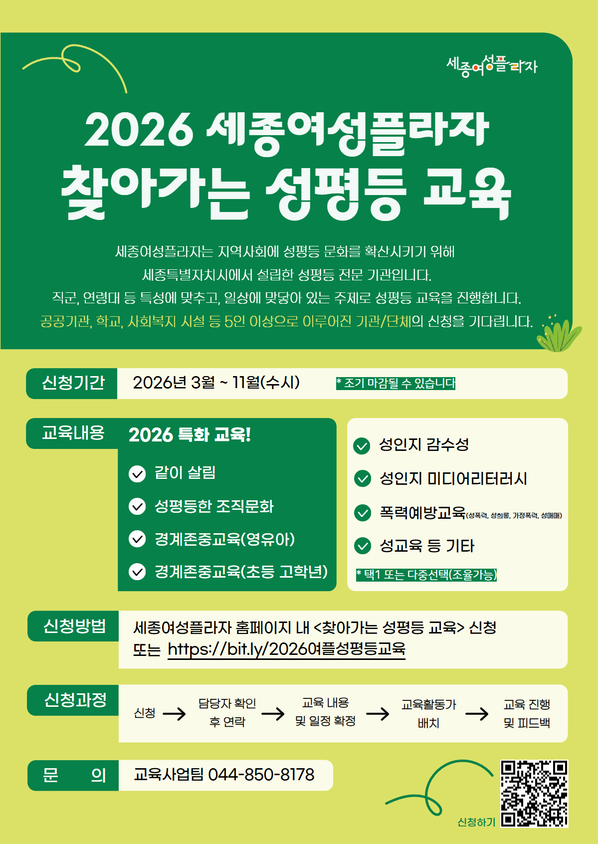 2026 세종여성플라자 <찾아가는 성평등 교육> 안내