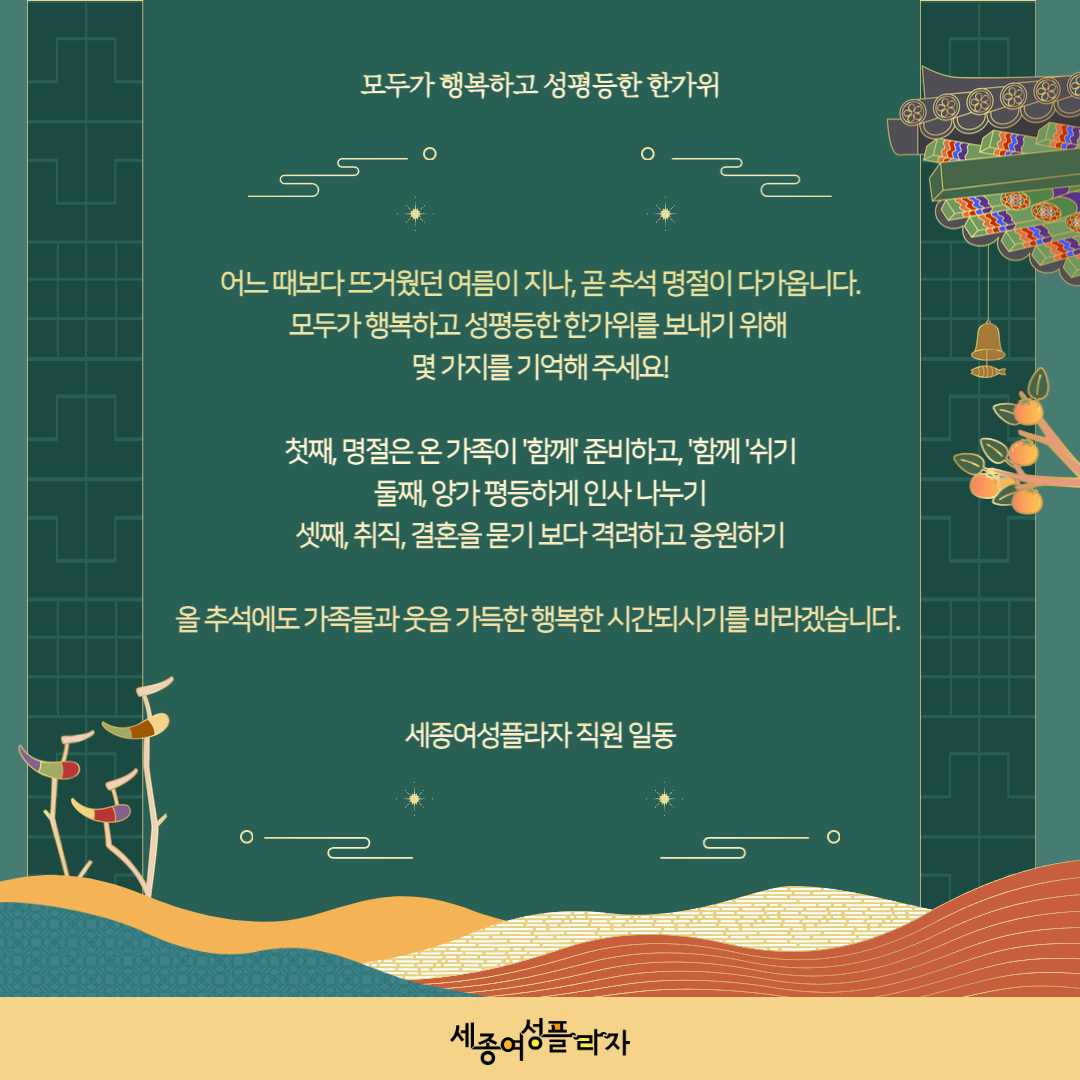 행복하고 성평등한 한가위 되시기를 바라겠습니다. |
