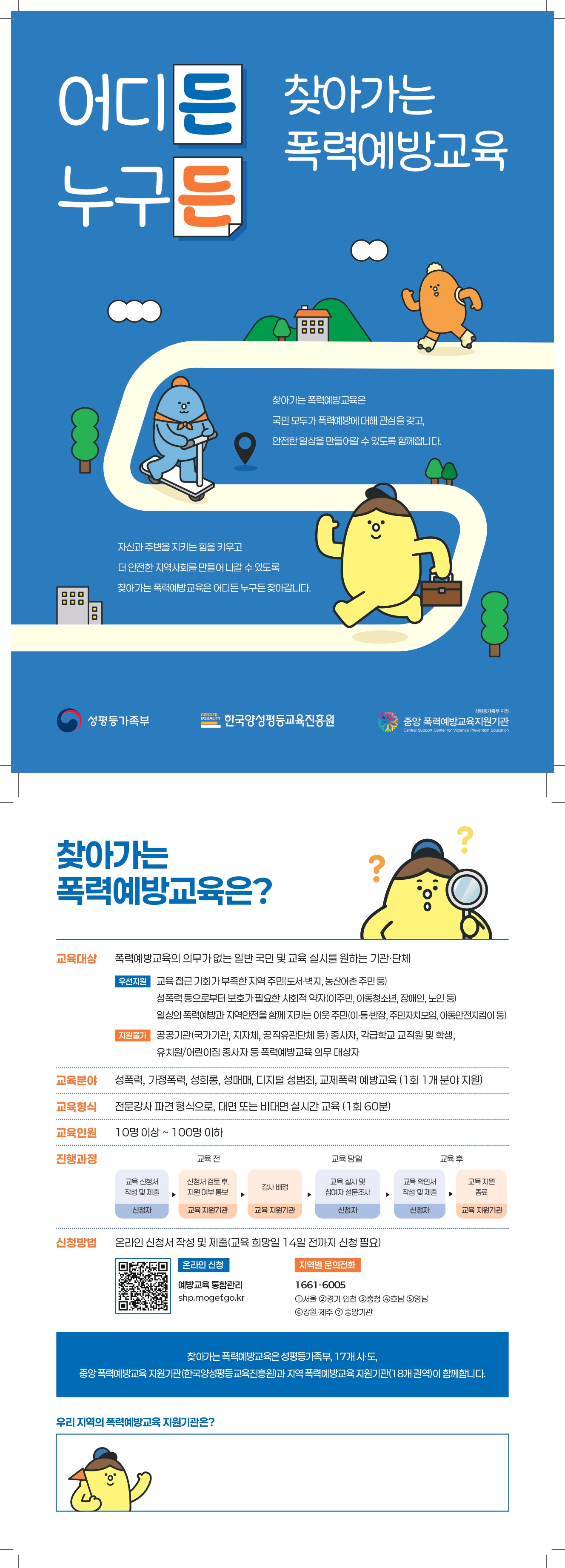 지원 규모 성폭력, 가정폭력, 성희롱, 성매매, 디지털 성범죄, 교제폭력 예방교육(1회 1개 분야)