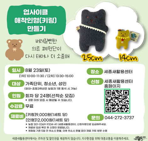 전체 342건 현재 페이지 14/57 카드리스트 검색 제목+내용 제목 내용 작성자 검색 [세종새활용센터] 업사이클 애착 인형 키링 만들기 작성일 2025.08.04 조회수 114 [세종새활용센터] 자개로 꾸미는 나만의 유리잔 작성일 2025.08.04 조회수 130 [움직임사회적협동조합] 세종시 이주 청년여성의 정착을 위한 홀씨 프로젝트 '작당... 작성일 2025.08.04 조회수 123 2025년 일본군 ‘위안부’ 피해자 기림의 날 세종시민행사 작성일 2025.08.01 조회수 206 2025년 자살유족의 날 기념 자살유족 수기공모전 「같이, 다시봄날」 작성일 2025.08.01 조회수 134 [한국농산어촌네트워크] 2025 시골언니 프로젝트 작성일 2025.07.23 조회수 161 9 10 11 12 13 14 15 16 17 18 14 / 57