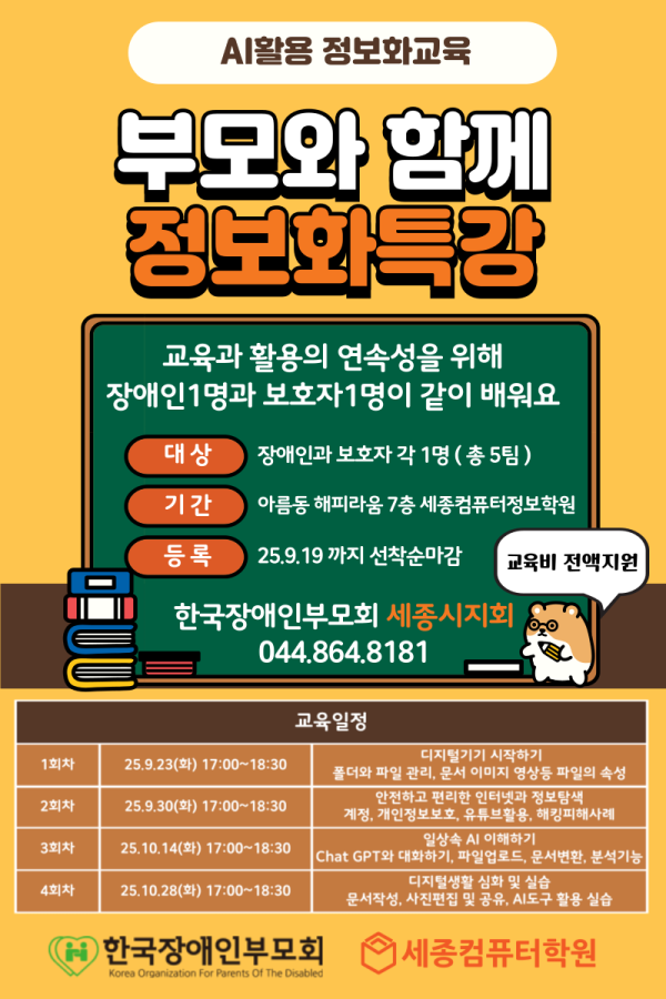 전체 336건 현재 페이지 7/56 카드리스트 검색 제목+내용 제목 내용 작성자 검색 [사단법인 한국장애인부모회 세종특별자치시지회]2025년 "세종시 장애인 정보화교... 작성일 2025.09.02 조회수 80 [세종시 마을공동체 시네마다방] "2025 조치원 필름 로맨스" 사전 상영회 안내 작성일 2025.09.02 조회수 86 [세종특별자치시 여성단체협의회] "2025년 양성평등주간 기념행사" 개최 작성일 2025.08.29 조회수 120 [세종특별자치시교육청] 2025년 성인지 감수성 "성평등한 일상의 공유, 그리고 상상" 작성일 2025.08.29 조회수 147 [움직임사회적협동조합] 제1회 "움직임성평등영화제" 작성일 2025.08.28 조회수 256 [세종일자리경제진흥원] "2025 세종 빈일자리 채움" 박람회 작성일 2025.08.26 조회수 117 2 3 4 5 6 7 8 9 10 11 7 / 56