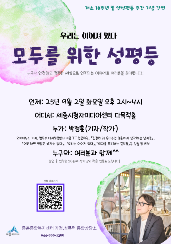 전체 336건 현재 페이지 8/56 카드리스트 검색 제목+내용 제목 내용 작성자 검색 [세종시] 제 2회 해밀단길 축제 '해밀단길 레인보우 빌리지' 작성일 2025.08.25 조회수 91 [세종여성새로일하기센터] "공간정리매니저" 등록교육 작성일 2025.08.25 조회수 128 [세종특별자치시 보람청소년자유공간] MBTI 성격유형 전문가와 함께하는 가족 소... 작성일 2025.08.21 조회수 91 [세종광역치매센터] 제18회 "치매극복의 날" 기념식 자원봉사자 모집 작성일 2025.08.21 조회수 89 [세종광역치매센터] 2025년 제18회 "치매극복의 날" 기념식 작성일 2025.08.21 조회수 82 [종촌종합복지센터 가정성폭력통합상담소] 우리는 이어져 있다 '모두를 위한 성평등 작성일 2025.08.21 조회수 146 3 4 5 6 7 8 9 10 11 12 8 / 56