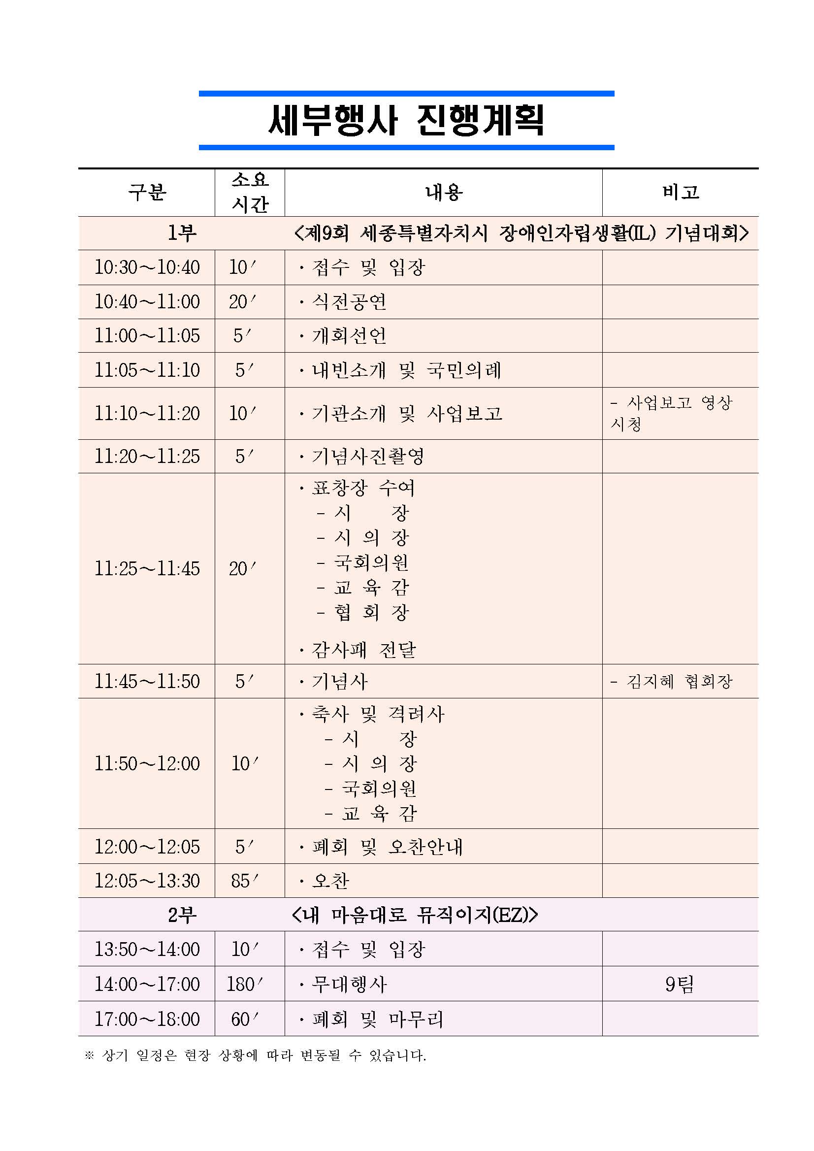 | [사)세종특별자치시장애인자립생활협회] 제9회 "세종특별자치시 장애인자립생활(IL) 기념대회" | |