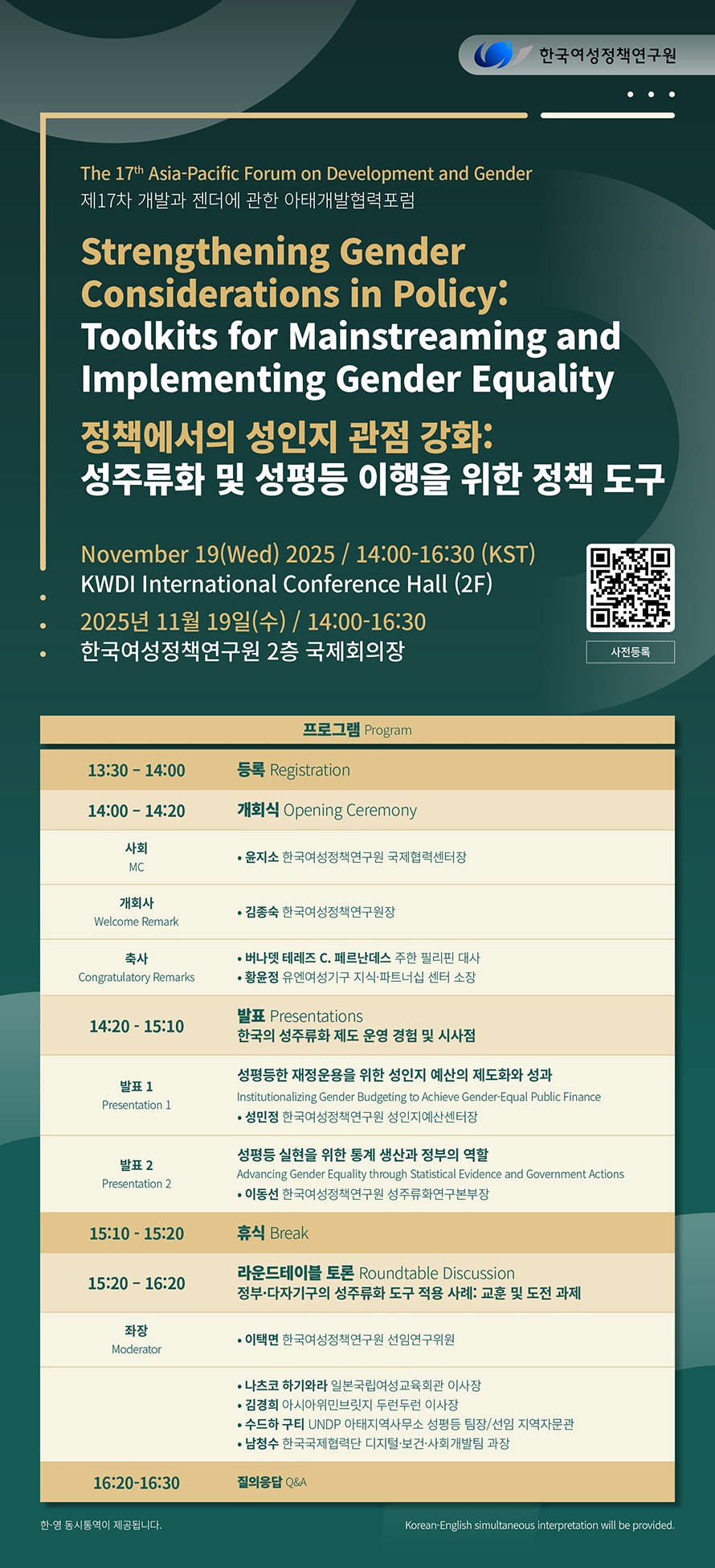 | [한국여성정책연구원]제17차" 개발과 젠더에 관한 아태개발협력"포럼 | |