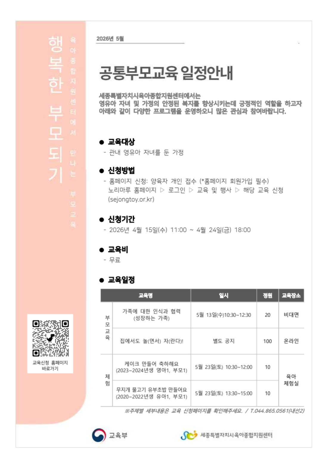 | [세종시육아종합지원센터] 2026년 5월 공통부모교육 일정안내 | |