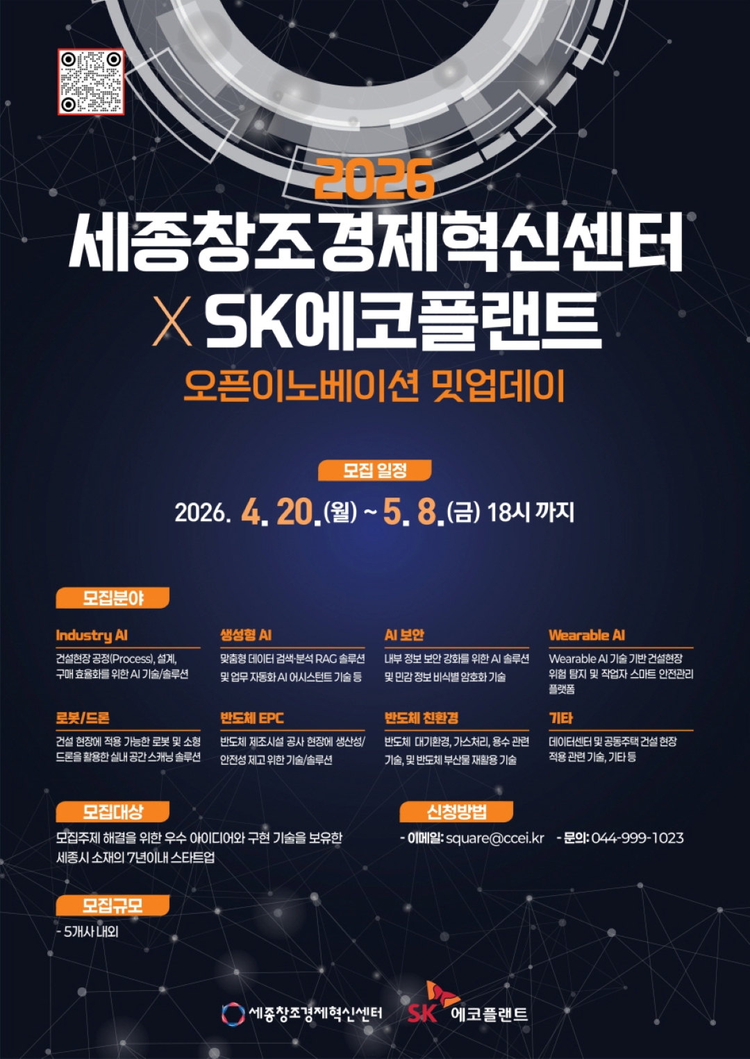 | [세종창조경제혁신센터] SK에코플랜트 리버스피칭 & 오픈이노베이션 밋업 참여기업 모집 | |