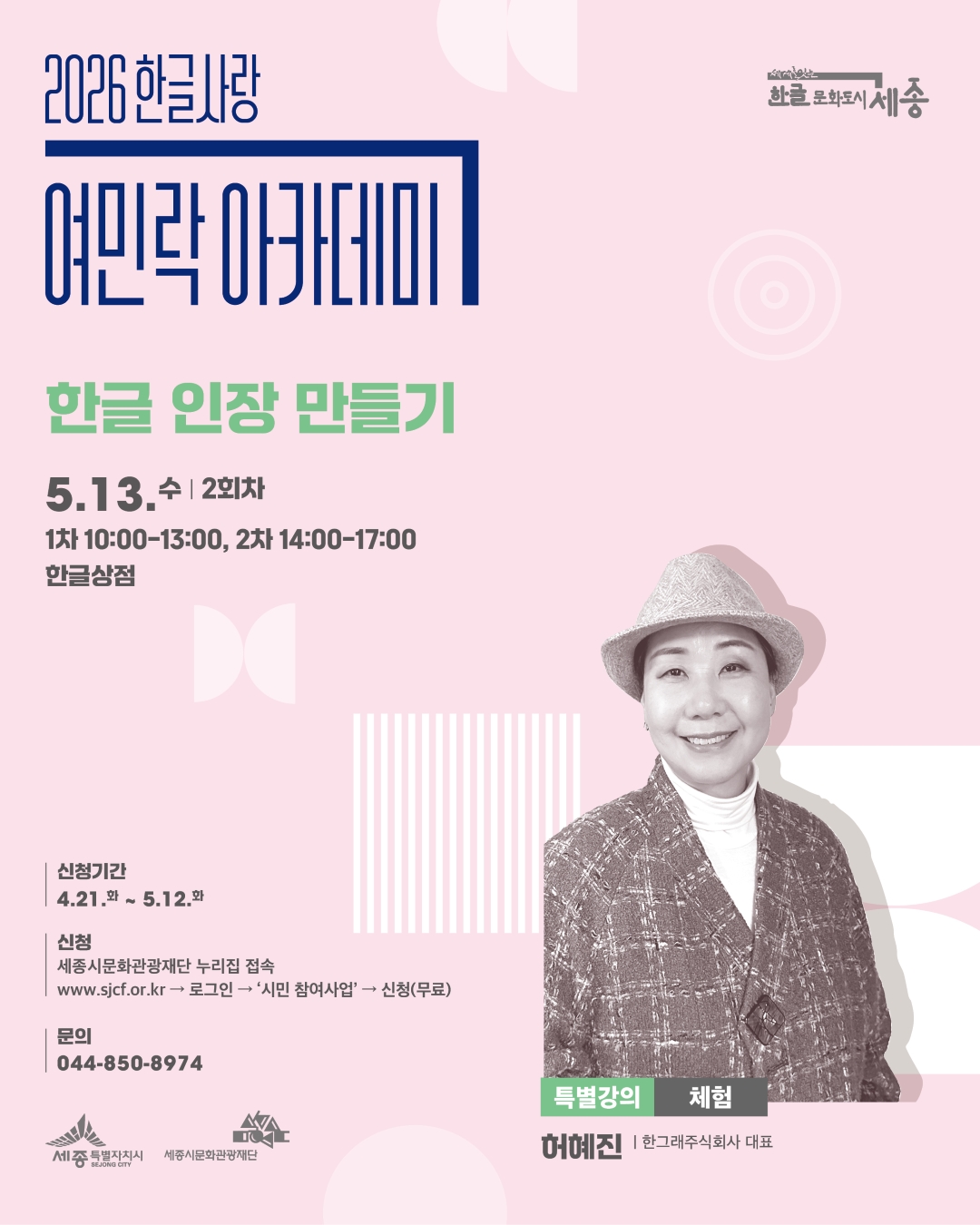 | [세종시문화관광재단] 한글인장 만들기 / 특별강의(체험) | |