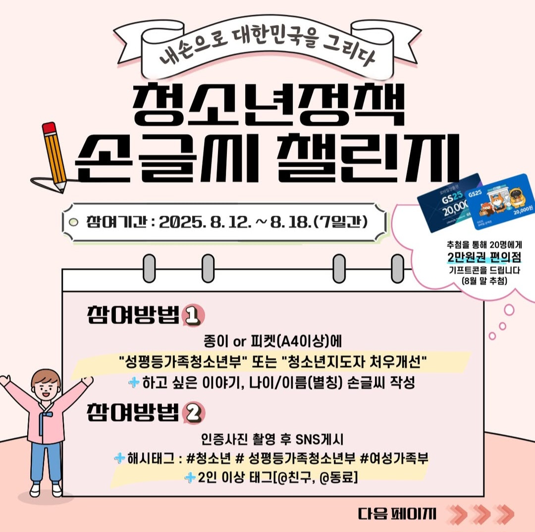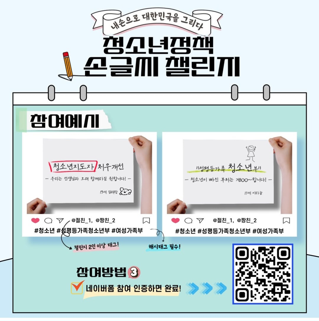 | [세종특별자치시청소년황동진흥센터] 청소년정책 국민 참여 "손글씨" 챌린지 | |