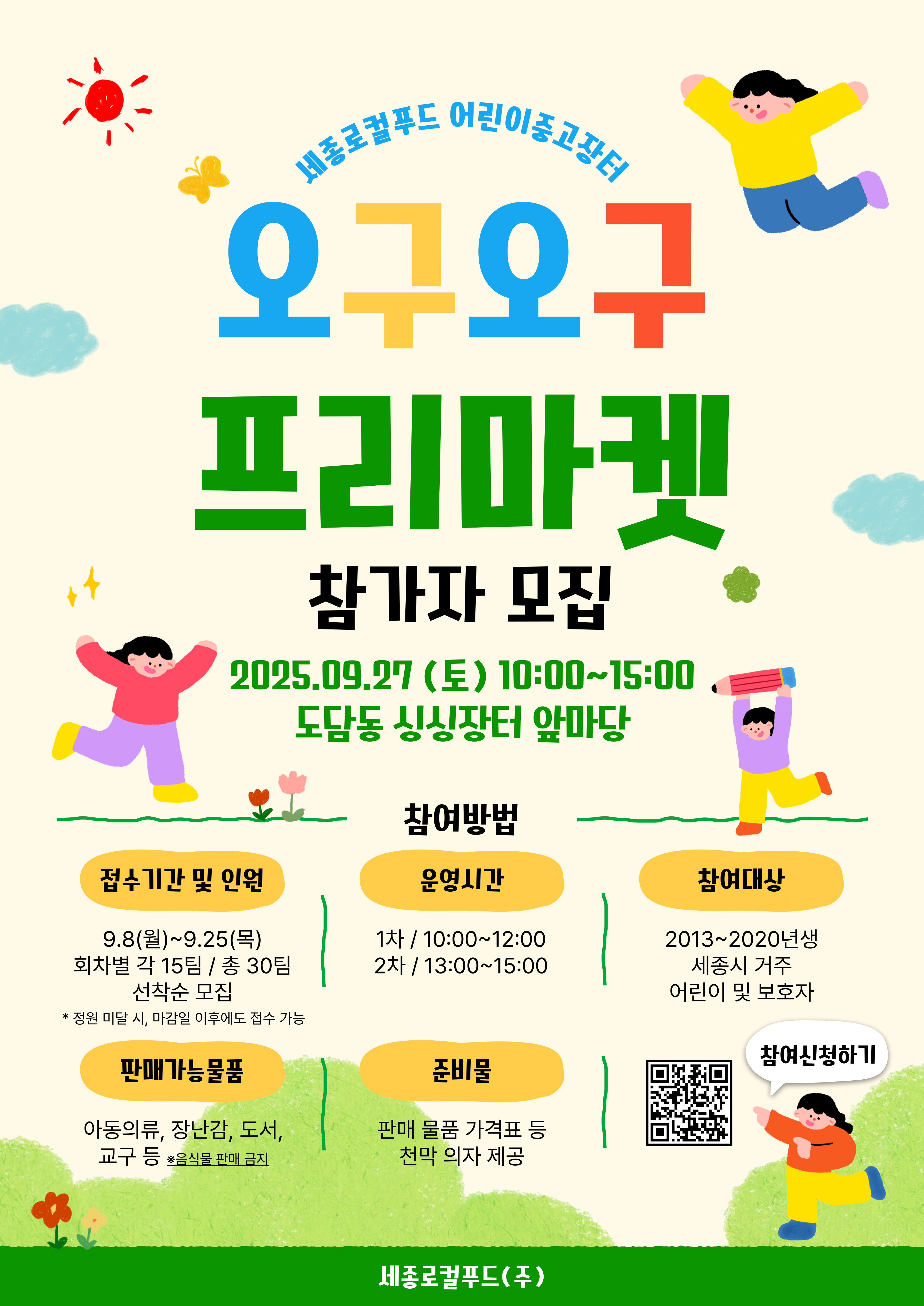 [세종로컬푸드(주)] 싱싱장터 어린이 중고장터 "오구오구 프리마켓" 판매자 모집 안내 | |