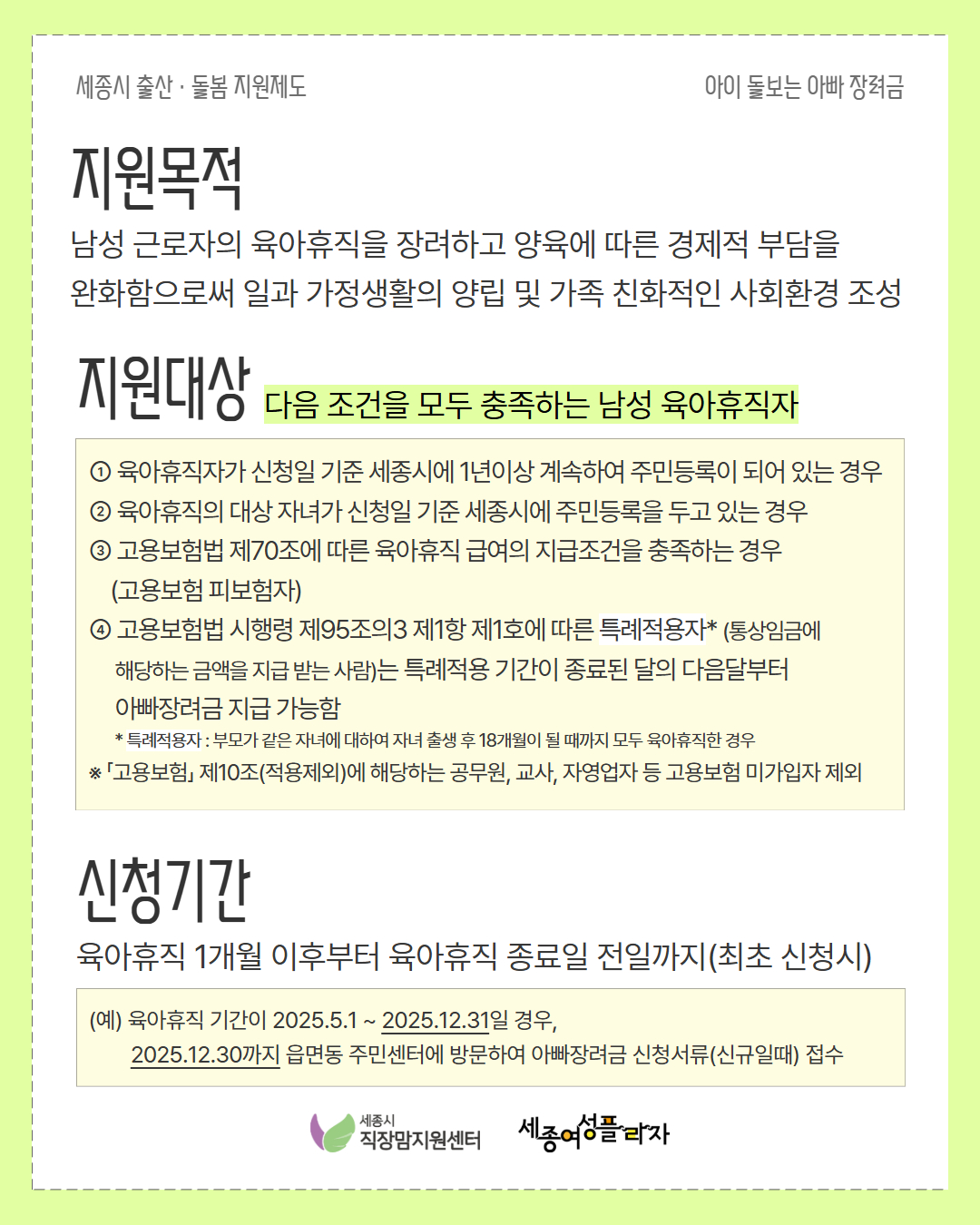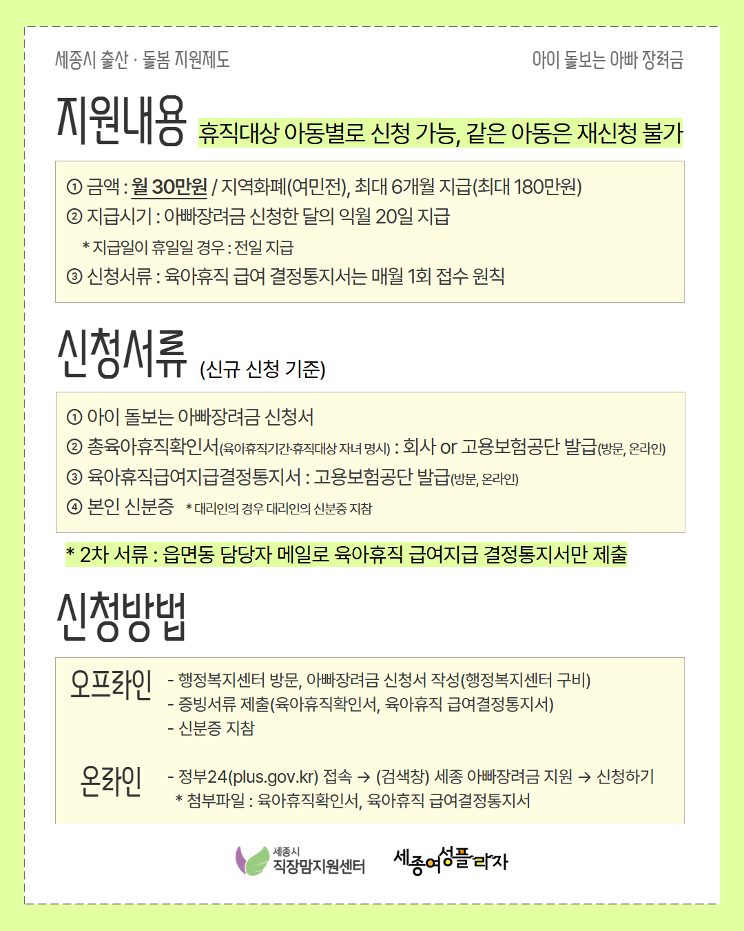 | [육아][세종시] 아이 돌보는 아빠 장려금 | |