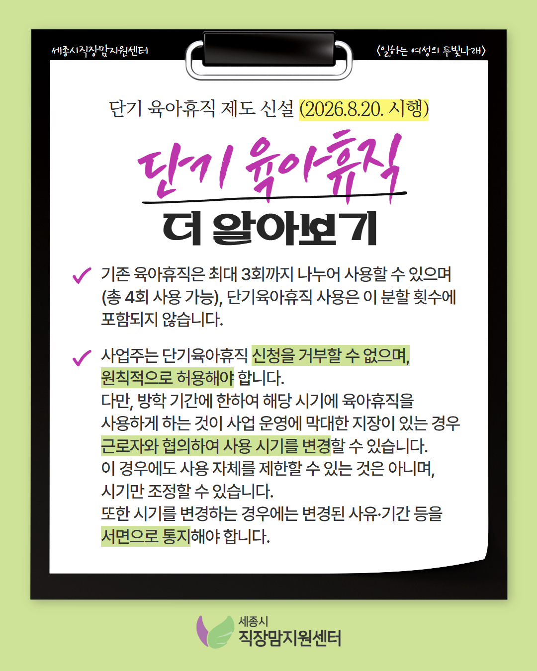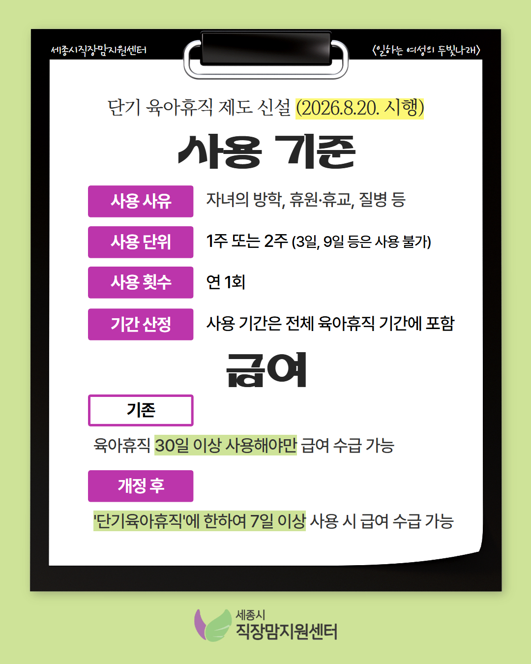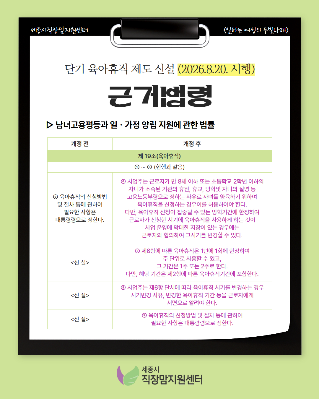 | [육아]2026 하반기 개정사항_단기 육아휴직 제도 신설 | |