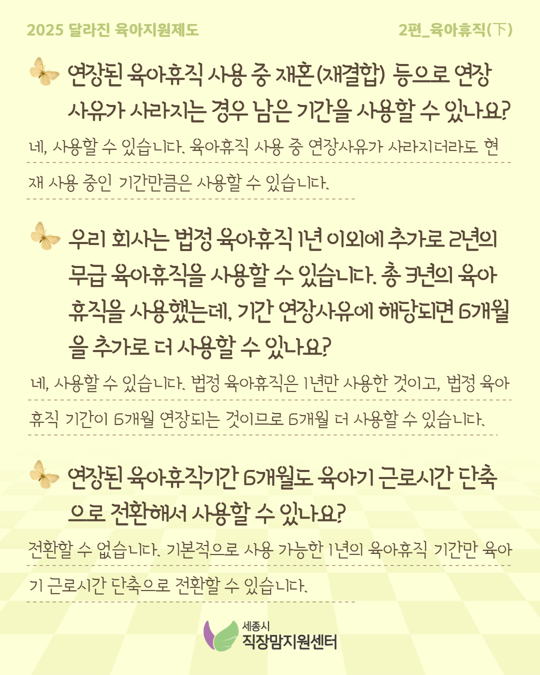 일,생활균형소식 일,생활균형소식 관한 표입니다. [육아]2025 달라지는 육아지원제도, 이것도 궁금해요! -2편 육아휴직(下)- 작성자 관리자 작성일2025.05.07 조회수 522 첨부파일 인스타_육아지원제도_QA_5.jpg (403.4 KB) 인스타_육아지원제도_QA_6.jpg (736.1 KB) 인스타_육아지원제도_QA_7.jpg (778.5 KB) 인스타_육아지원제도_QA_8.jpg (733.0 KB) 목록으로 다음글 2025 달라지는 육아지원제도, 이것도 궁금해요! -3편 육아기 근로시간 단축, 배우자 출산휴가- 이전글 2025 달라지는 육아지원제도, 이것도 궁금해요! -1편 육아휴직(上)-